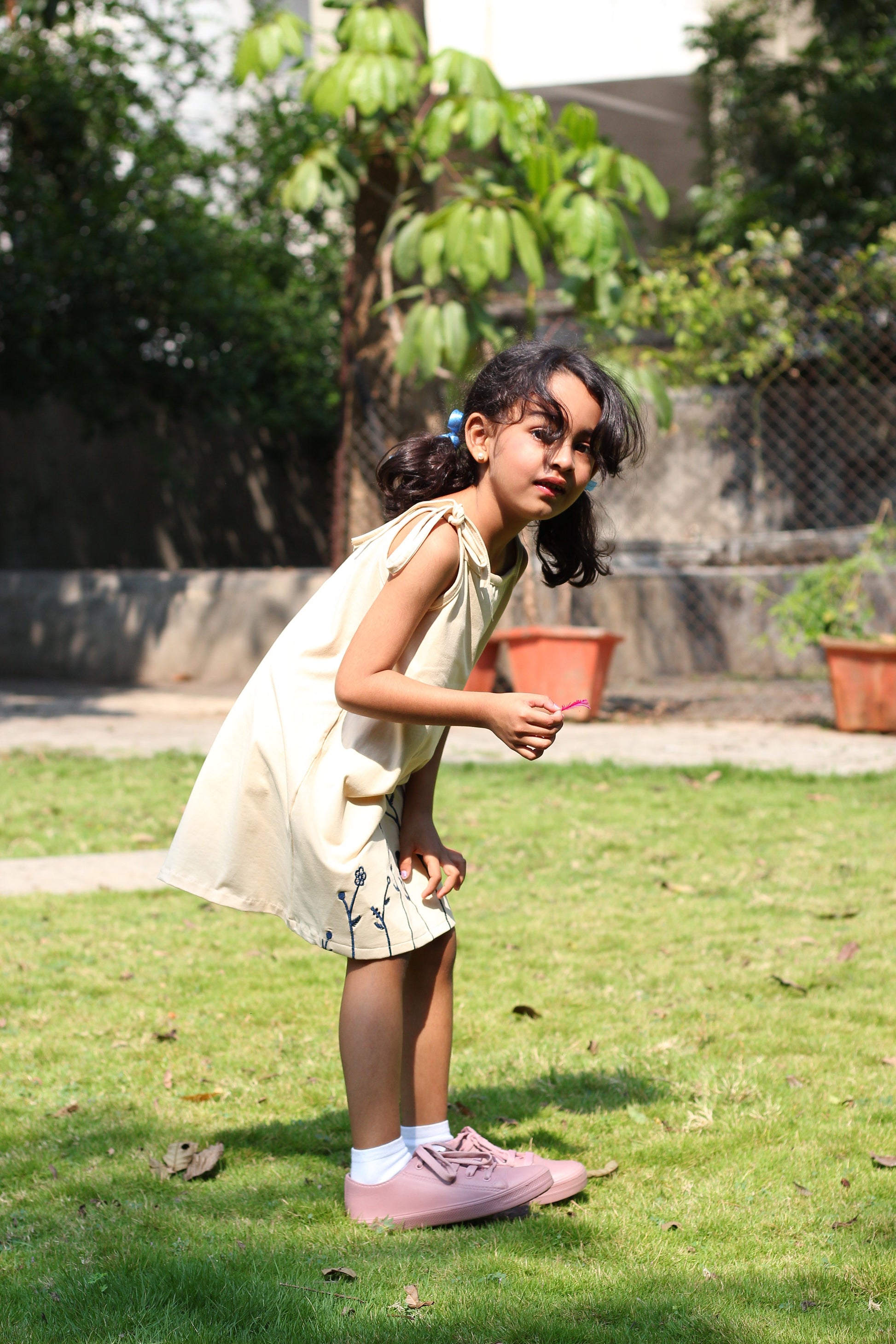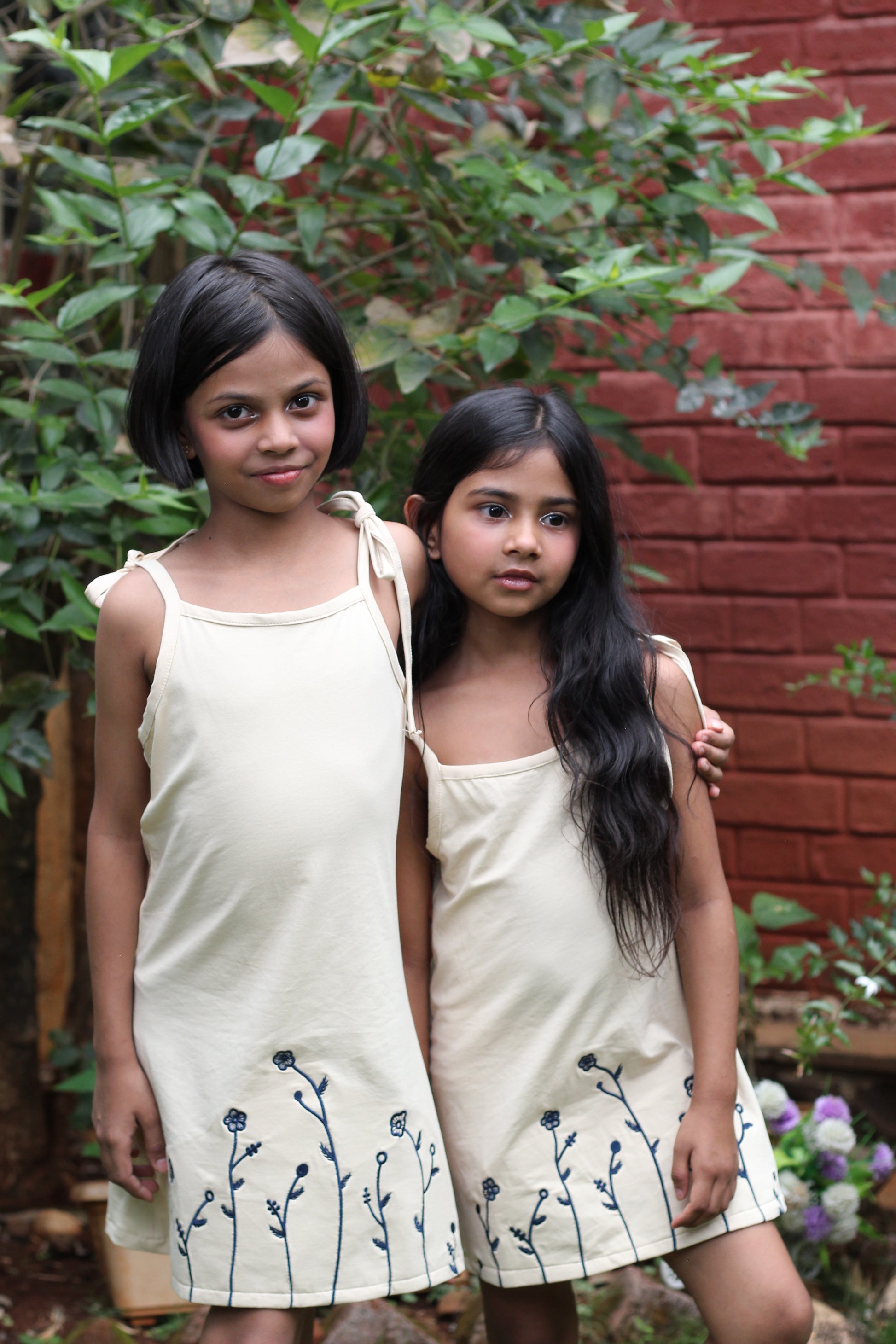 Indulge your child's love for all things elegant and beautiful with Kizzu's exquisite Flores beige shoulder tie dress! This stunning dress features a gorgeous floral embroidery at the bottom edge, using a tasteful and refined blue thread that adds a unique touch to the dress. Made with premium-quality materials, this dress is both comfortable and versatile, perfect for all occasions, whether it's for a formal event or a casual day out. Let your child stand out from the crowd and showcase their impeccable style and taste with this exceptional dress. Order now and experience the elegance and beauty that only Kizzu can provide