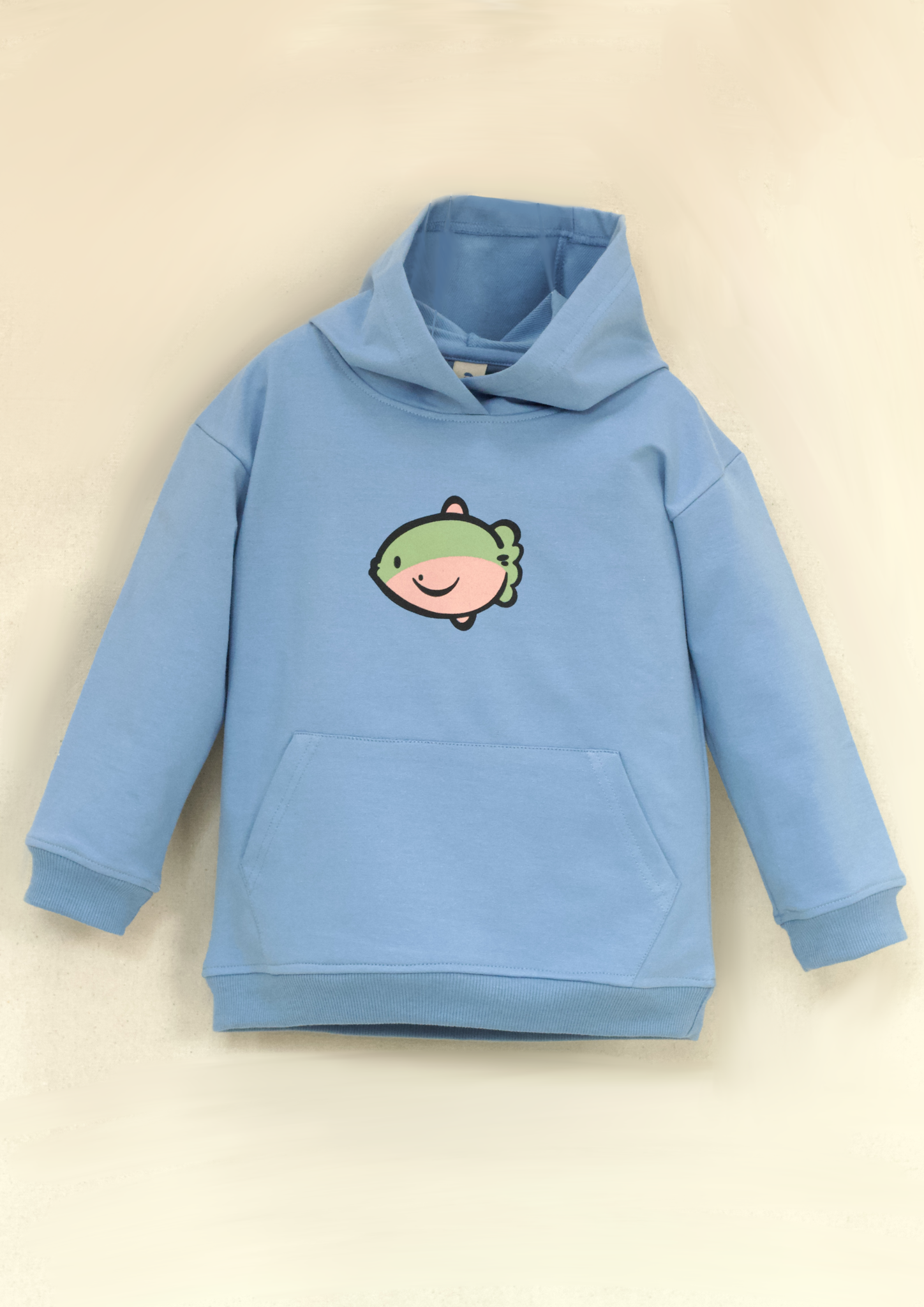 Blue skies, gentle sea, and the warmest clothes is what the winter longs for. Kizzu brings you the summer warmth packed in our best, and snug hoodie. Vibrant tide in tide out motif in the back, and a fish in the front.